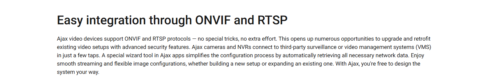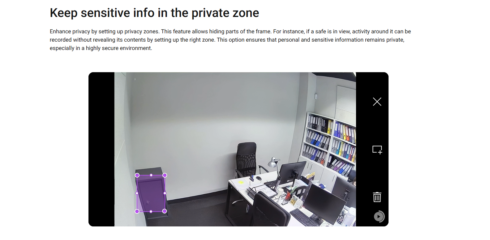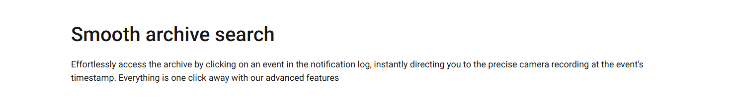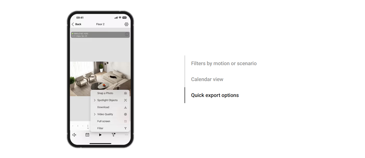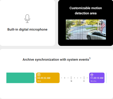 Get full control over the camera stream with precise privacy settings for each system user. Enjoy smooth and fast navigation with an intuitive interface empowered by state-of-the-art streaming technology. NDAA-compliant hardware — utilizing cutting-edge software and AI — delivers a clear image right when you need it.
