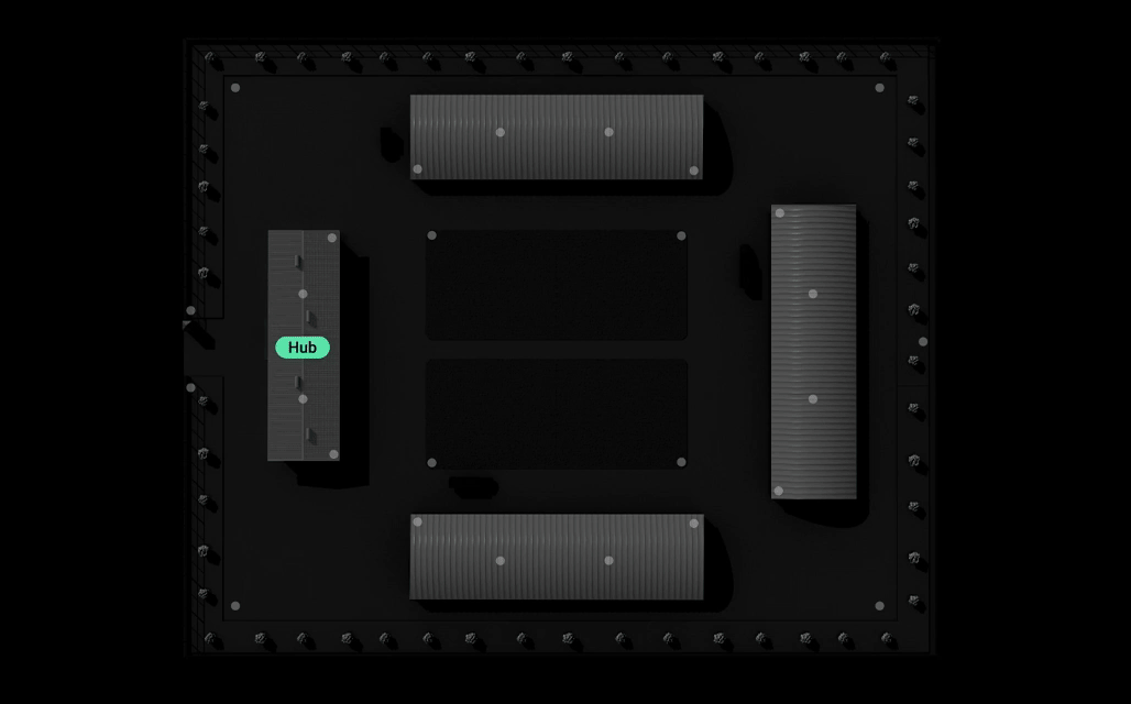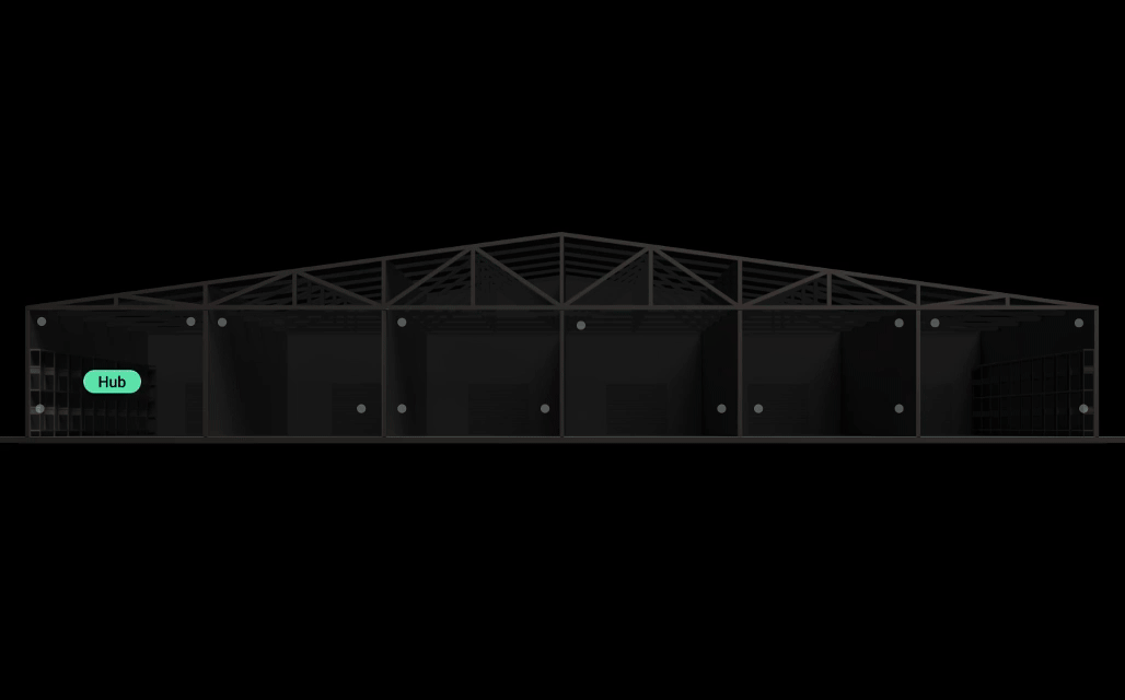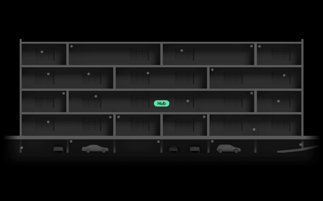 | Up to 1,100 meters of radio communication range with a hub
