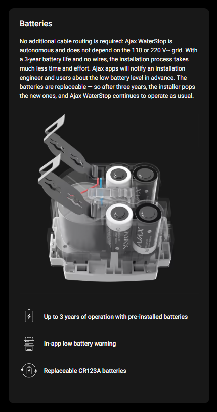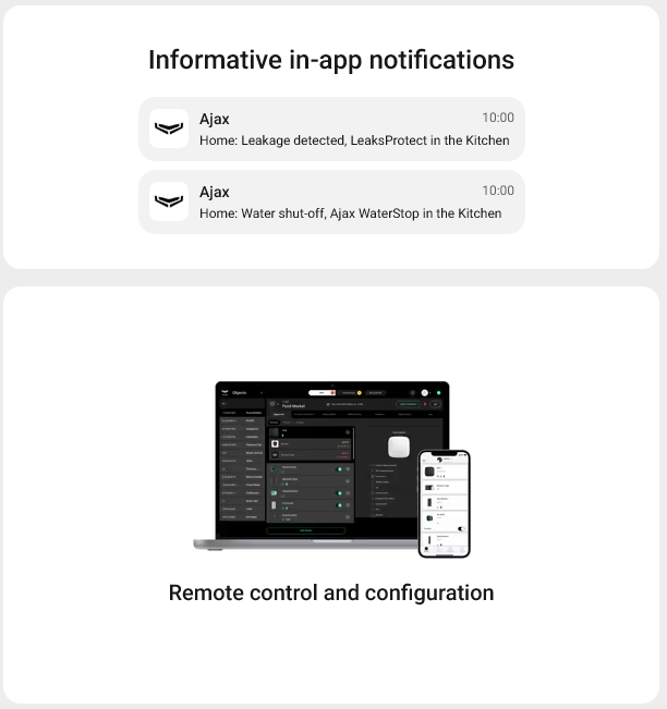 The Ajax system uses two-way secure radio communication based on Jeweller proprietary protocol. It supports block cipher encryption and device authentication on every session with the hub to prevent sabotage, spoofing, or data theft.